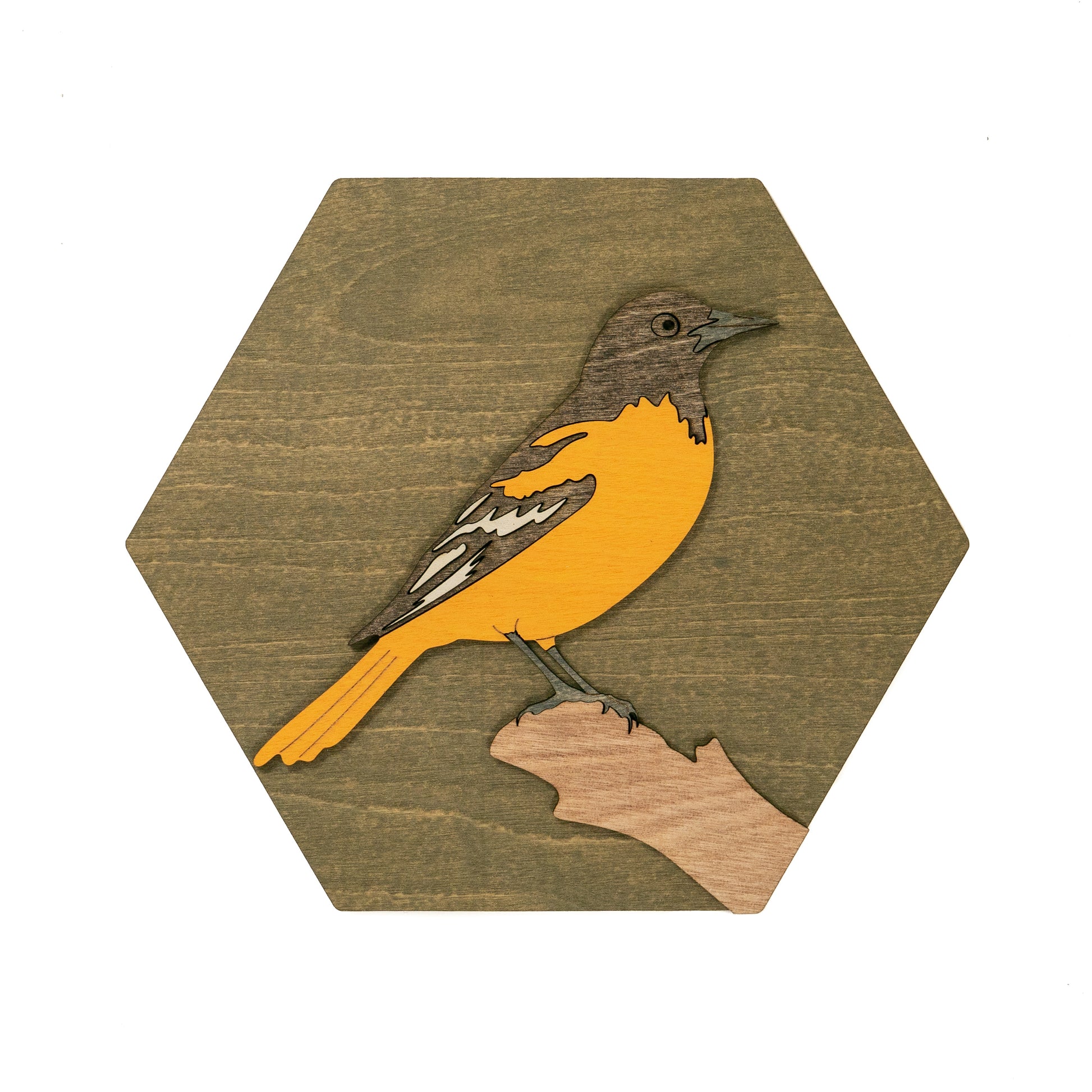 We designed and made this Baltimore Oriole as part of our unique wall art collective for bird enthusiasts to collect and display their favorite birds indoors - these make fantastic gifts.