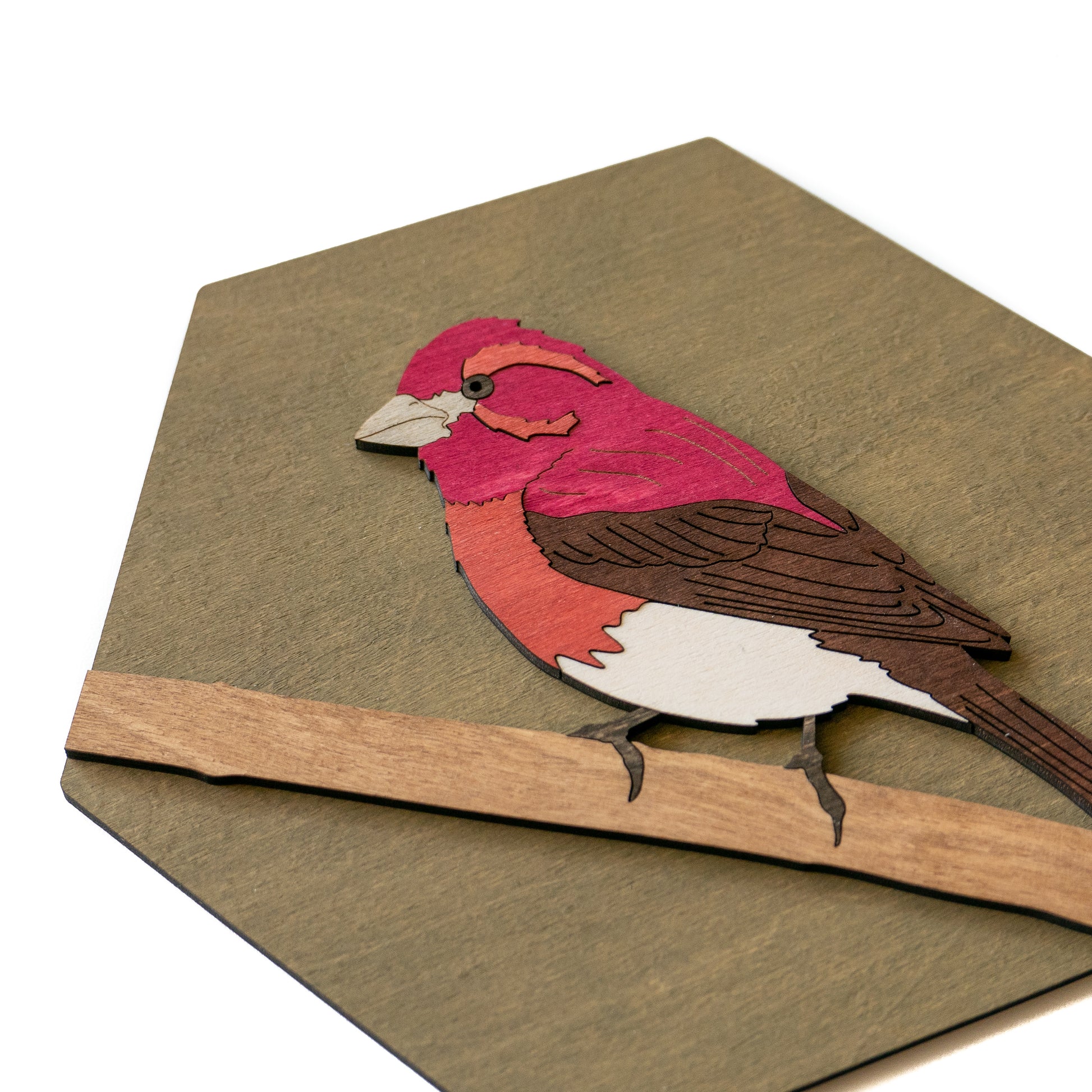 This Purple Finch is part of our unique wall art collection, created for bird enthusiasts to collect and display their favorite species indoors.